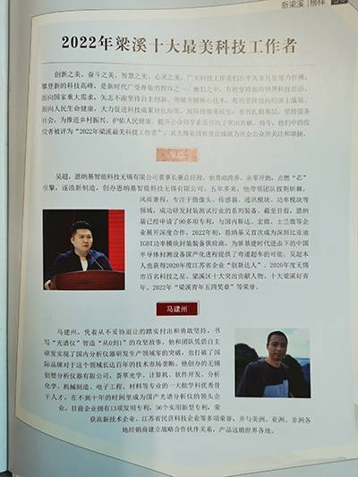 “2022年梁溪十大最美科技工作者”近日揭曉,創想儀器馬建州總經理與常青,楊嘉輝,吳超,錢仕全,倪長輝,周文宇,蔣磊,楊賢,馬騰飛等10人,都是來自科研生產一線的科技工作者,榮獲此稱號。
