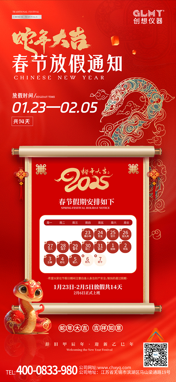 GLMY創想儀器2025年春節放假通知來啦