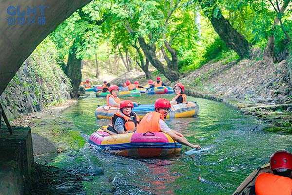 漂流過程中,河道蜿蜒曲折,水流時(shí)而平緩,時(shí)而湍急。大家乘坐著皮筏艇順流而下,感受著大自然的清涼與愜意。不過,對(duì)于創(chuàng)想儀器的員工們來說,漂流只是“前奏”,打水仗才是這場(chǎng)活動(dòng)的“重頭戲”。大家紛紛拿起水槍、水瓢,向身邊的人發(fā)起“攻擊”,一時(shí)間,水花四濺,歡聲笑語(yǔ)回蕩在整個(gè)山谷。無論是領(lǐng)導(dǎo)還是員工,都沉浸在這歡樂的氛圍中,忘卻了工作的壓力和疲憊。